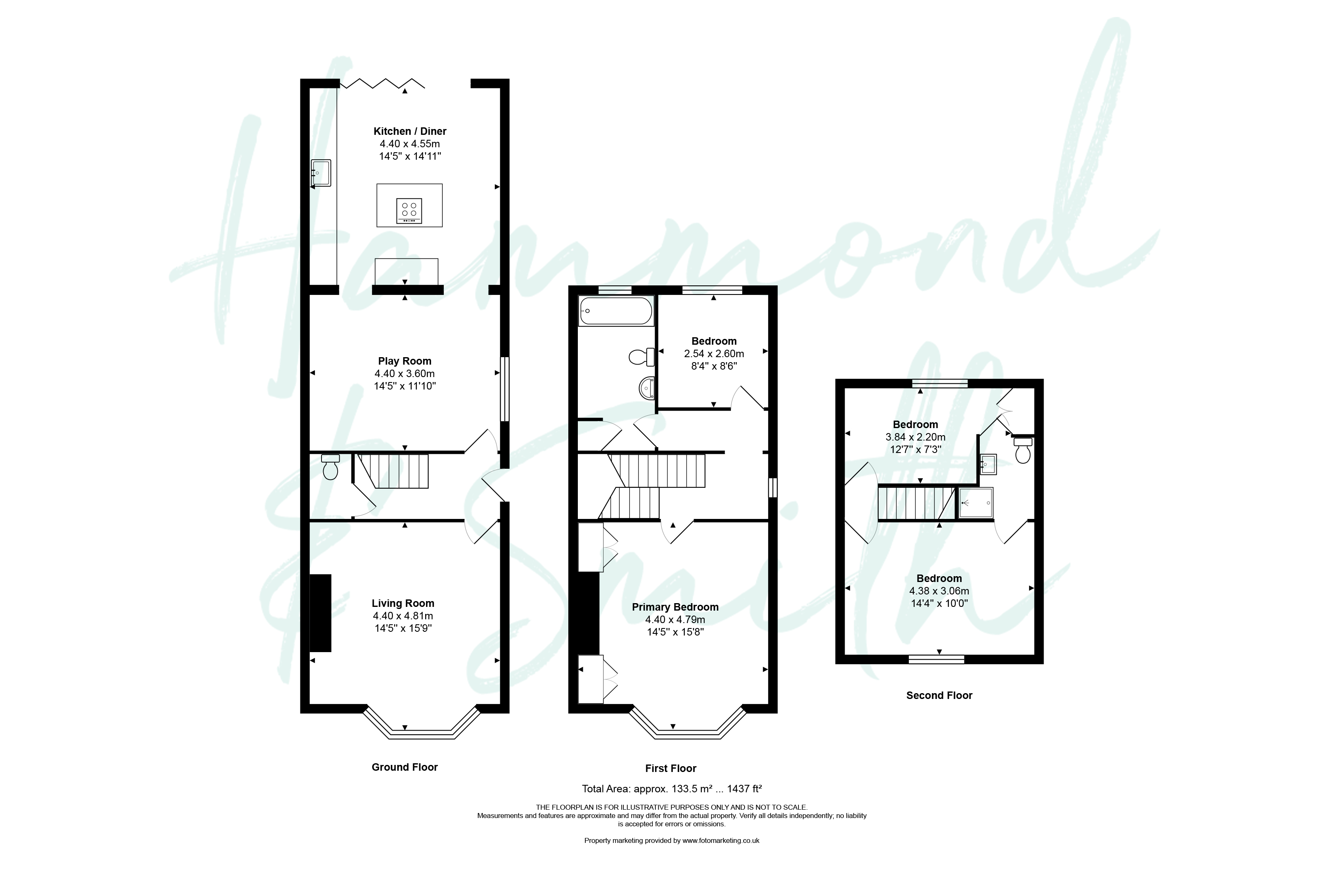 Head upstairs to the first floor to find a gorgeous primary bedroom with its large bay window, fireplace and bespoke fitted wardrobes. Also found on the first floor is another bedroom plus the family bathroom that’s packed with personality and joy. Take the stairs to the top floor to find two further bedrooms that are blessed with their Jack and Jill shower room - an ideal layout for siblings to enjoy.