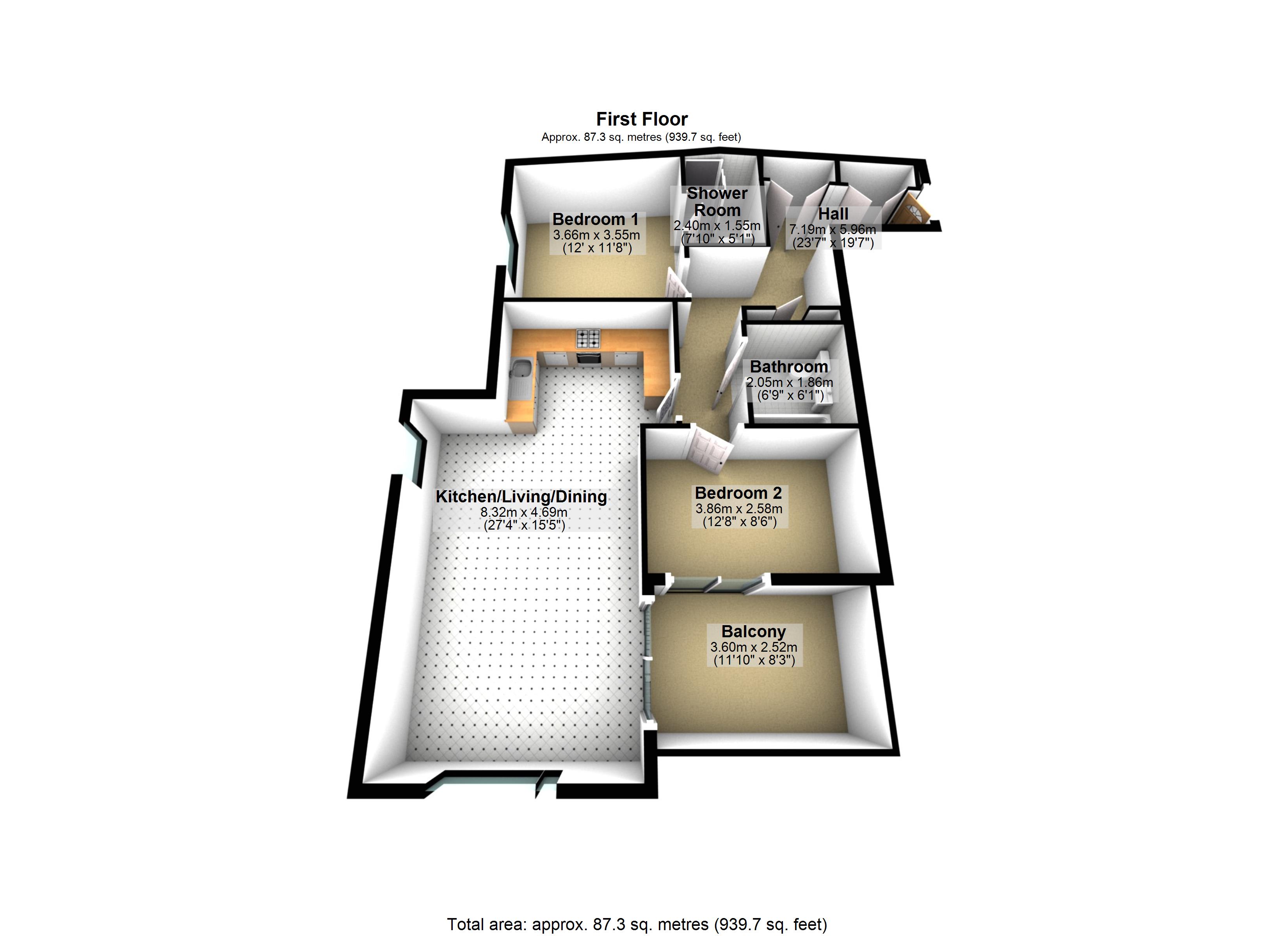 Located on the first floor with lift access, this apartment has been beautifully designed for modern day living. Whether looking to share with a friend, in need of the perfect place to downsize, or in search of a superb first time buy - this apartment would suit all. Stepping into the hallway you’ve access to all the rooms ahead along with all important handy storage - which the current owners have cleverly utilised to comprise a ‘working from home’ station. At its heart, the open plan living area includes zoned spaces to cook, dine and lounge. The kitchen itself provides integrated appliances, plenty of storage along with space for a dining table and chairs. The living area beautifully overlooks the private terrace, perfect for when the sun shines and you need a fix of fresh air. With two double bedrooms you're spoilt for choice - one complete with its own en-suite shower and the other with sliding doors onto the private terrace. Last but by no means least, for days when only a long soak in the tub will do, the family bathroom is a serene spot to unwind.